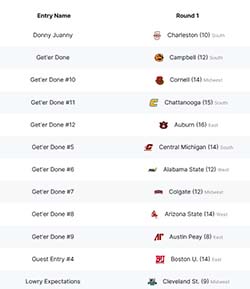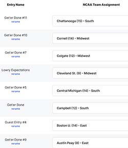 • Each entry is randomly assigned one NCAA team from the first round (a maximum of 64 entries are allowed).