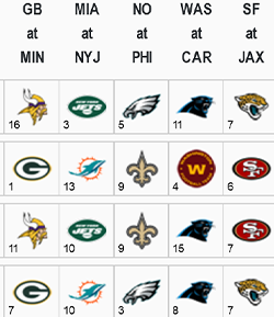 NFL Confidence Pool Samples